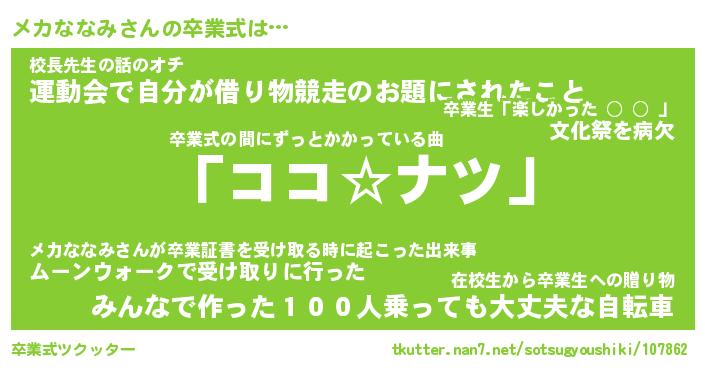 | 伝説のあだ名 | 『不死鳥の傭兵メカななみ』 |