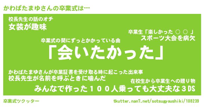 | 伝説のあだ名 | 『不死鳥のスナイパーかわばたまゆ』 |