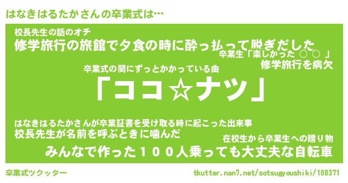 | ヘコむあだ名 | 『はなっふぃ~』『豆乳』『はなっぺ』 |