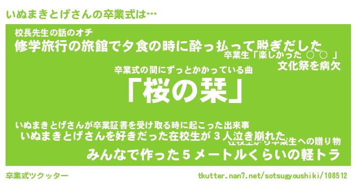 | ツイッター | いぬまきとげさんのツイッターID『fukuyoka_man』 |