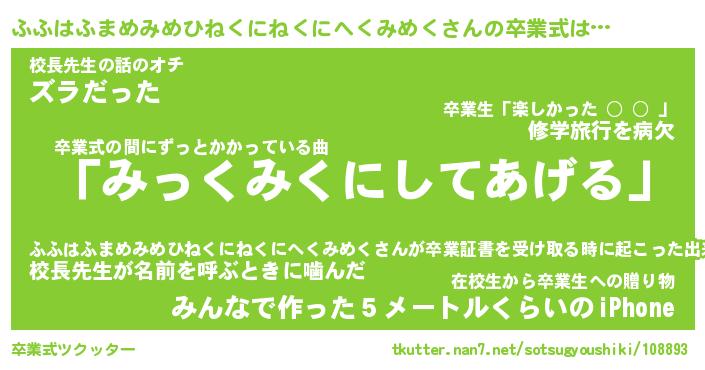 | 番長 | ふふはふまめみめひねくにねくにへくみめく、またの名を・・・!『伝説のふふはふまめみめひねくにねくにへくみめくちゃん』 |