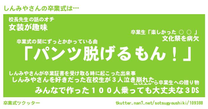 | 意味不明あだ名 | 『ペロリンしんみや』『永久保存しんみや』 |