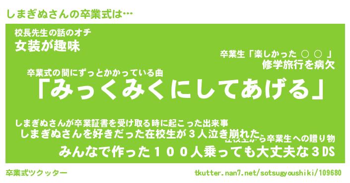 | 意味不明あだ名 | 『ペロリンしまぎぬ』『永久保存しまぎぬ』 |