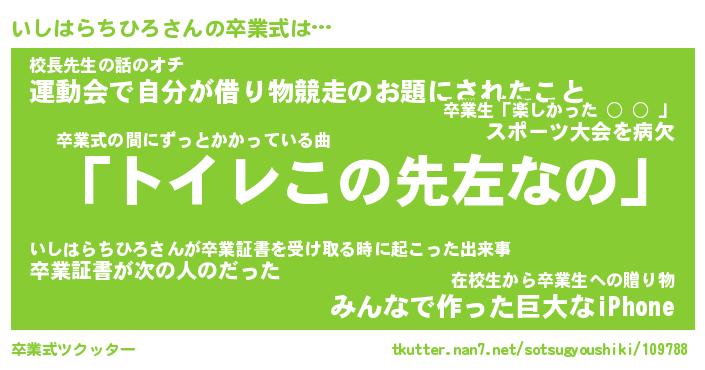 | 胡散臭い通販商品みたいなあだ名 | 『必ず成功するブレスレット…その名も「いしはらちひろ」』 |