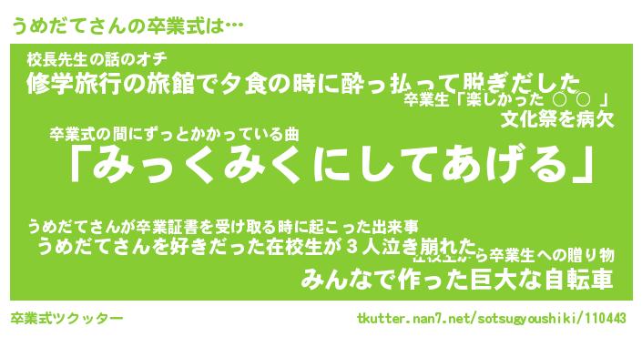 | 胡散臭い通販商品みたいなあだ名 | 『必ず成功する霊験あらたかなお札…その名も「うめだて」』 |