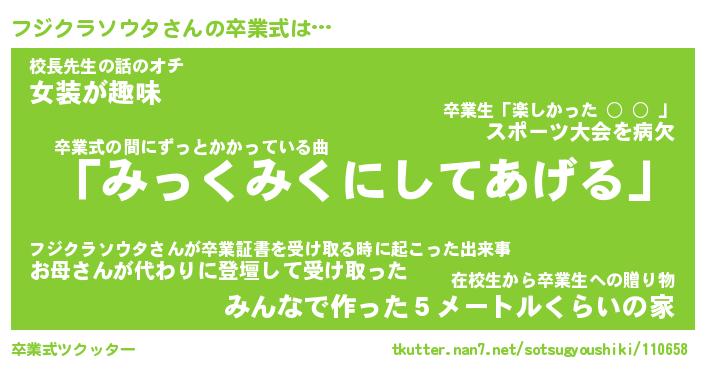| 欧米人風あだ名 | 『マイケルフジクラソウタ』 |