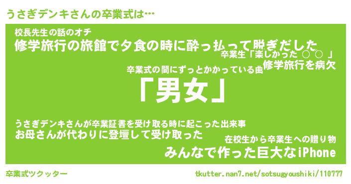 | 胡散臭い通販商品みたいなあだ名 | 『必ず成功するブレスレット…その名も「うさぎデンキ」』 |