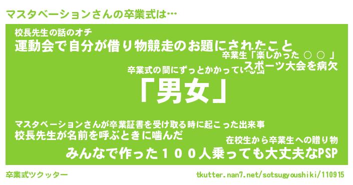 | 男性向けラノベタイトル風あだ名 | 『マスタベーションの憂鬱』 |