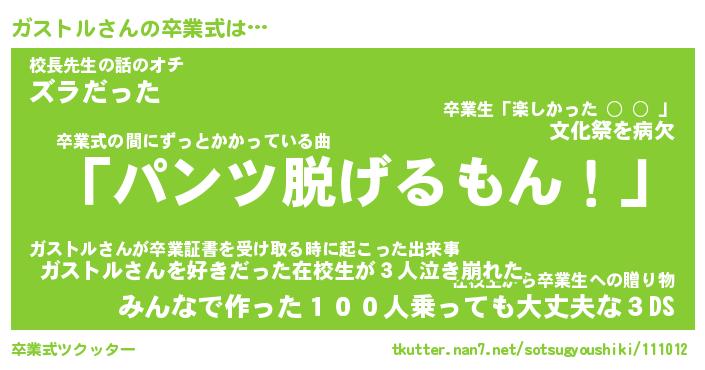 | 意味不明あだ名 | 『ペロリンガストル』『永久保存ガストル』 |