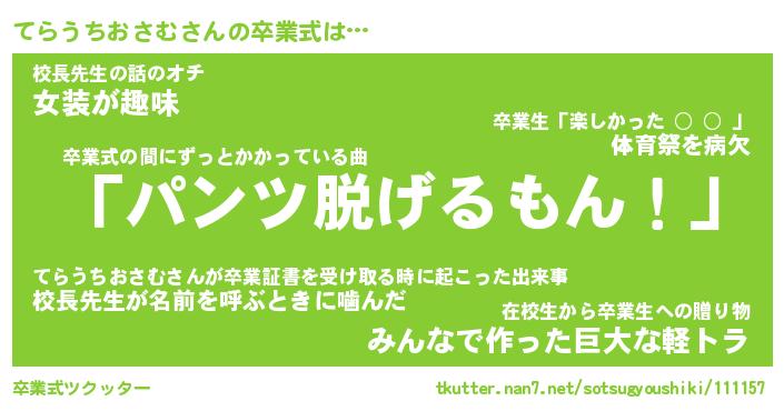 | 伝説のあだ名 | 『不死鳥のスナイパーてらうちおさむ』 |
