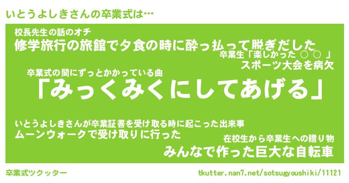 | 胡散臭い通販商品みたいなあだ名 | 『必ず成功するブレスレット…その名も「いとうよしき」』 |