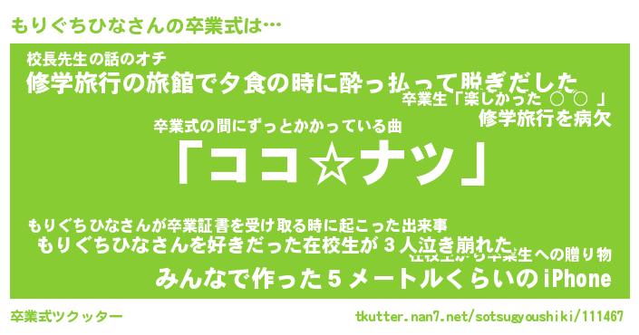 | 胡散臭い通販商品みたいなあだ名 | 『モテモテ間違いなし霊験あらたかなお札…その名も「もりぐちひな」』 |