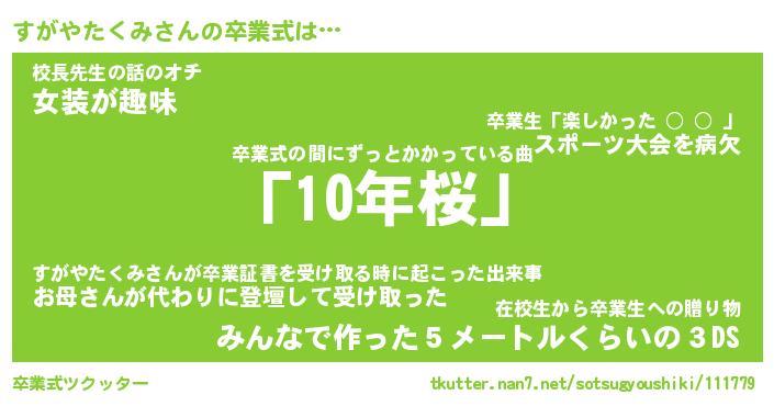 | 伝説のあだ名 | 『封印されしスナイパーすがやたくみ』 |