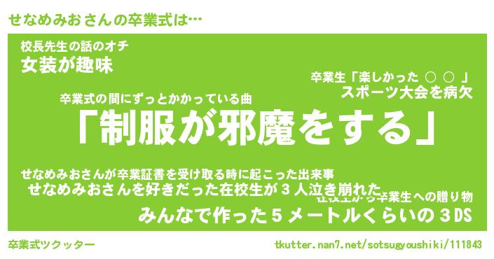 | ツイッター | せなめみおさんのツイッターID『namakemono_kun』 |
