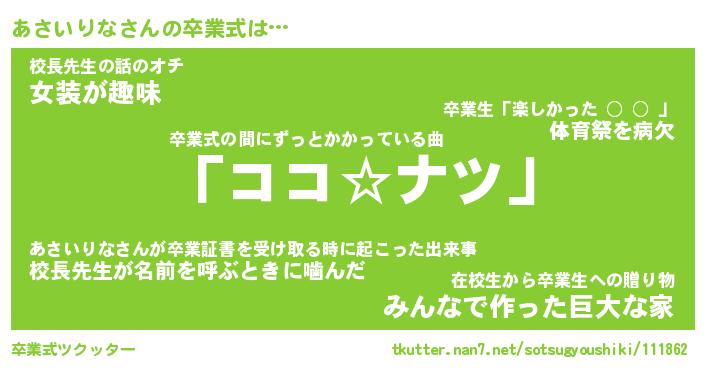 | 伝説のあだ名 | 『不死鳥のスナイパーあさいりな』 |