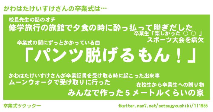 | ヒーロー風カッコイイあだ名 | 『スーパーカワハタケイスケ』 |