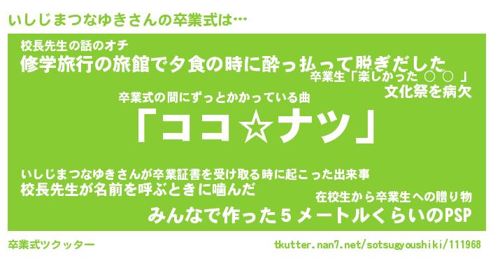 | 胡散臭い通販商品みたいなあだ名 | 『モテモテ間違いなしブレスレット…その名も「いしじまつなゆき」』 |
