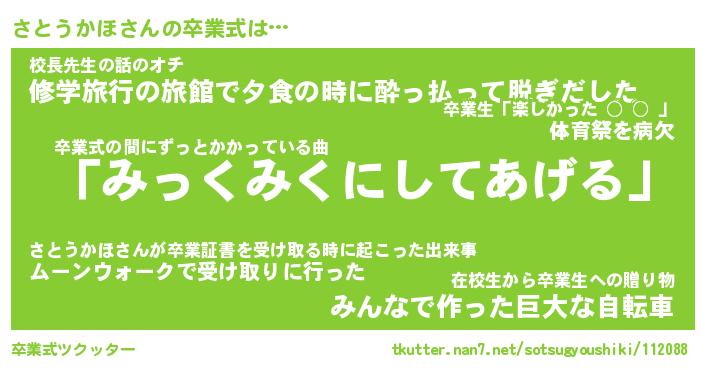 | 伝説のあだ名 | 『伝説のスナイパーさとうかほ』 |