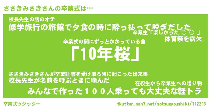 | ヘコむあだ名 | 『ささにゅー』『牛乳』『ささぷりん』 |