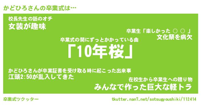 | ヘコむあだ名 | 『かどにゅー』『レバニラ』『かどを』 |