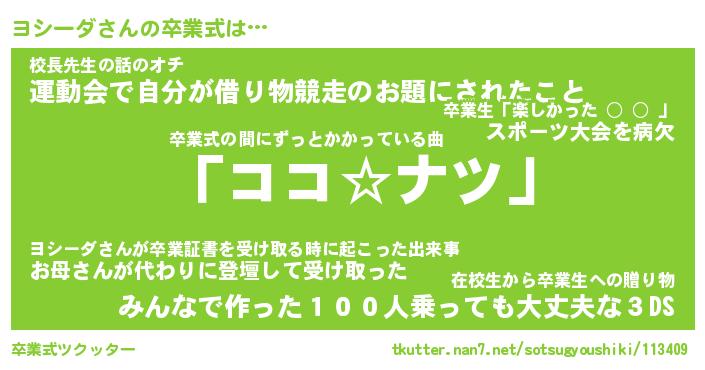 | ヘコむあだ名 | 『ヨシにゅー』『牛乳』『ヨシぷりん』 |