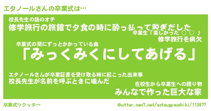 | 男性向けラノベタイトル風あだ名 | 『エタノールの憂鬱』 |