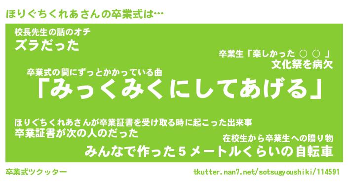 | 胡散臭い通販商品みたいなあだ名 | 『必ず成功するブレスレット…その名も「ほりぐちくれあ」』 |