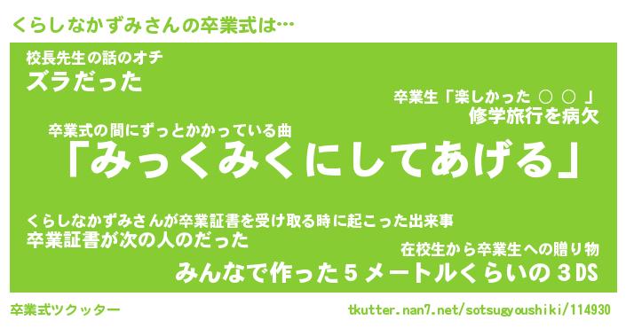 | 胡散臭い通販商品みたいなあだ名 | 『必ず成功するブレスレット…その名も「くらしなかずみ」』 |