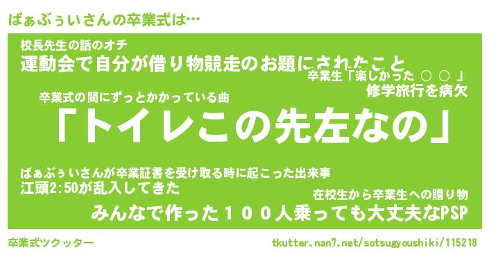 | 伝説のあだ名 | 『伝説のスナイパーばぁぶぅい』 |