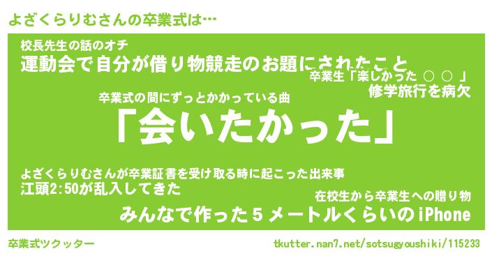 | 伝説のあだ名 | 『不死鳥のスナイパーよざくらりむ』 |
