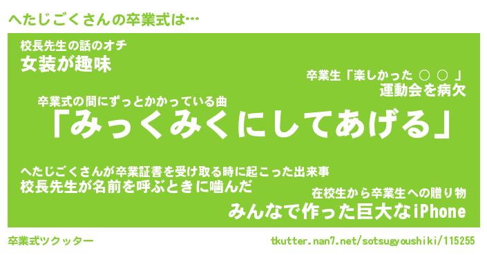 | ピコ太郎風あだ名 | 『ヘコ史郎』『ピヘ太郎』『ヘタ五郎』 |