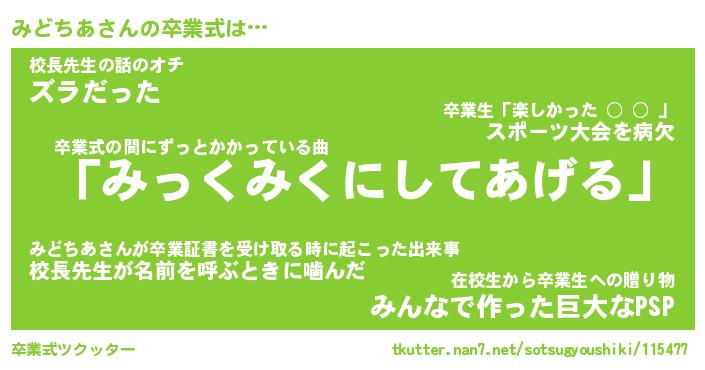 | 胡散臭い通販商品みたいなあだ名 | 『必ず成功するブレスレット…その名も「みどちあ」』 |