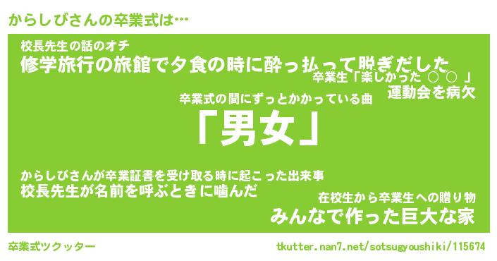 | ピコ太郎風あだ名 | 『カコ次郎』『ピカ次郎』『カラ四郎』 |