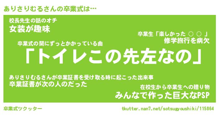 | ヘコむあだ名 | 『ありにゅー』『酢こんぶ』『ありお』 |