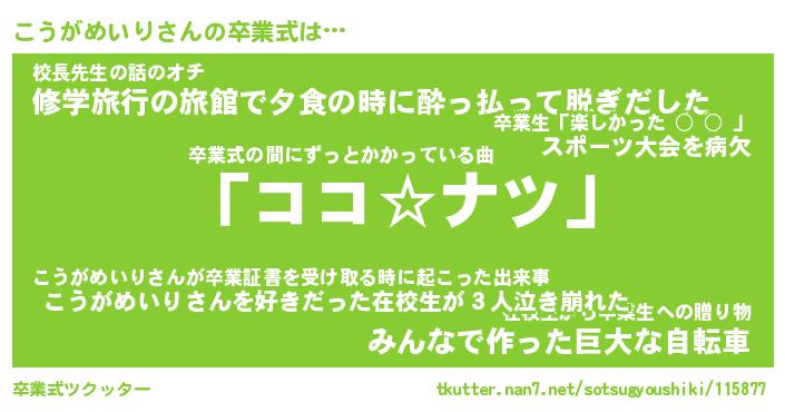 | 伝説のあだ名 | 『不死鳥のスナイパーこうがめいり』 |