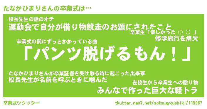 | ヘコむあだ名 | 『たなふぇ~』『つくし』『たなっ子』 |