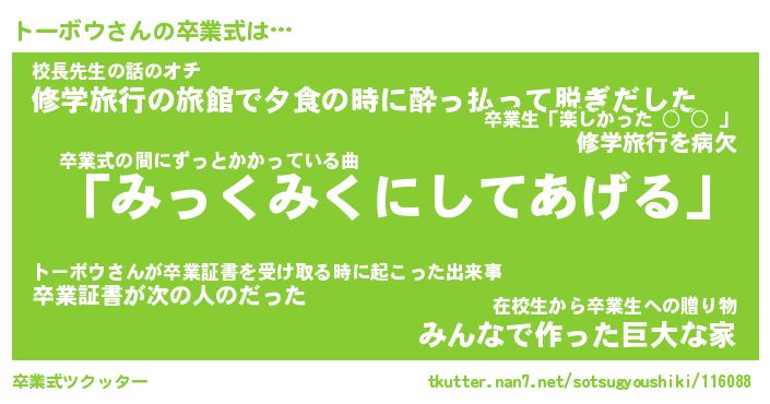 | ヘコむあだ名 | 『トーにー』『なまこ酢』『トーを』 |
