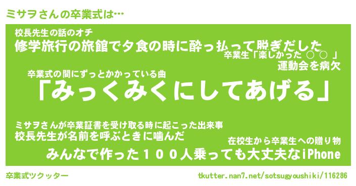 | 胡散臭い通販商品みたいなあだ名 | 『必ず成功する霊験あらたかなお札…その名も「ミサヲ」』 |