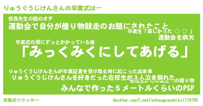| 胡散臭い通販商品みたいなあだ名 | 『必ず成功するブレスレット…その名も「りゅうぐうじけん」』 |