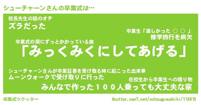 | ヘコむあだ名 | 『シュにゅー』『なまこ酢』 |