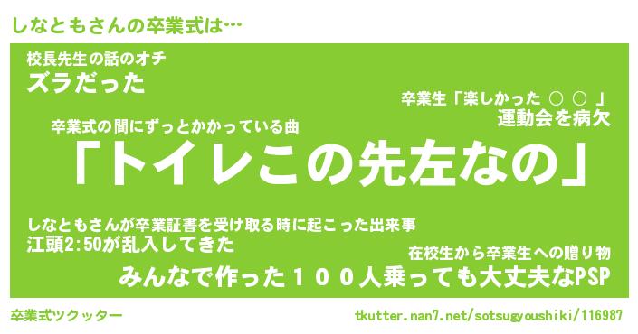 | 伝説のあだ名 | 『伝説のスナイパーしなとも』 |
