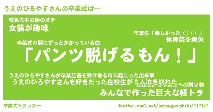 | 恥ずかしいあだ名 | 『プリティーうえのひろやす』『うえちん』 |