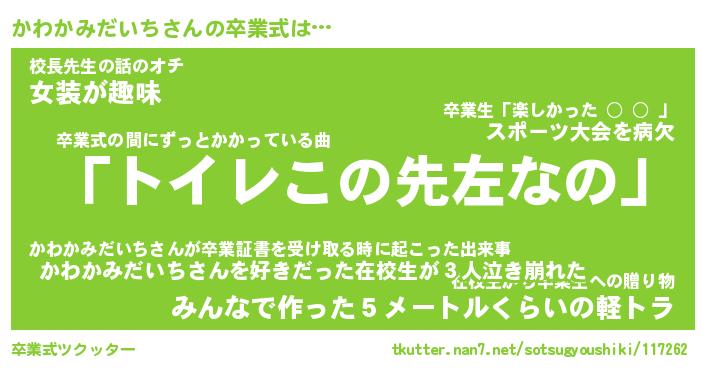 | 胡散臭い通販商品みたいなあだ名 | 『必ず成功する水晶球…その名も「かわかみだいち」』 |