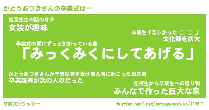| 胡散臭い通販商品みたいなあだ名 | 『必ず成功する霊験あらたかなお札…その名も「かとうあつき」』 |