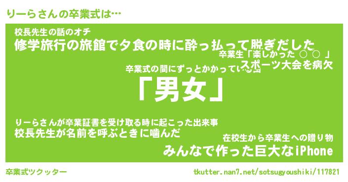 | 伝説のあだ名 | 『伝説のスナイパーりーら』 |