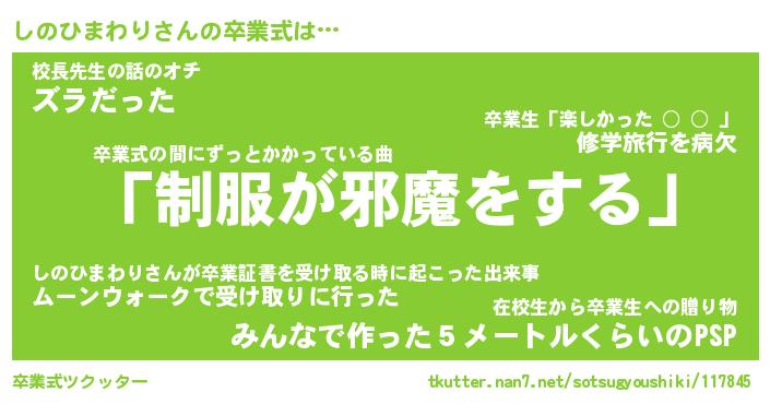 | ヘコむあだ名 | 『しのっふぃ~』『なまこ酢』 |