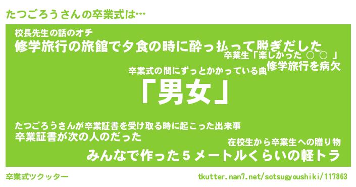 | 胡散臭い通販商品みたいなあだ名 | 『必ず成功するブレスレット…その名も「たつごろう」』 |