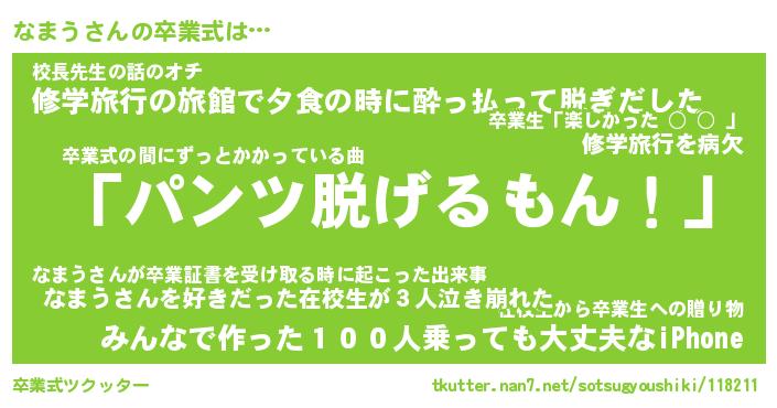 | ヘコむあだ名 | 『なまにー』『つくし』『なまを』 |