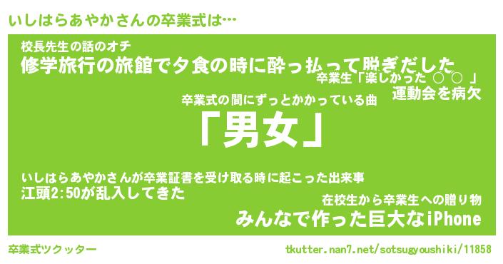 | 伝説のあだ名 | 『伝説のスナイパーいしはらあやか』 |