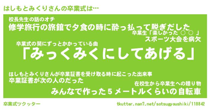 | 伝説のあだ名 | 『伝説のスナイパーはしもとみくり』 |